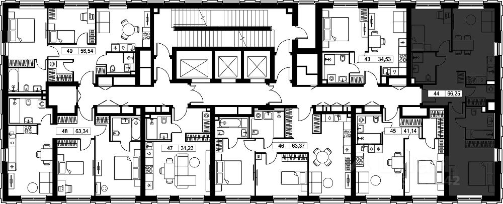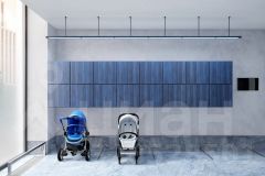 - Лобби по индивидуальному дизайн проекту от европейского бюро Вlank Architects: лаунж-зоны, ресепшен, колясочная, помещение для мытья лап животным после прогулки