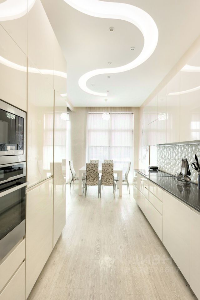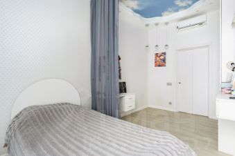 - В каждой комнате установлены кондиционеры, электропривод штор, в ванных комнатах и кухне теплый пол. В кухонной зоне есть дополнительное холодное место хранения.