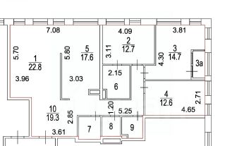 - Функциональная планировка позволила грамотно разместить прихожую с гардеробной комнатой, уютную кухню-гостиную, три изолированные спальни, два сан. узла, отдельную постирочную.