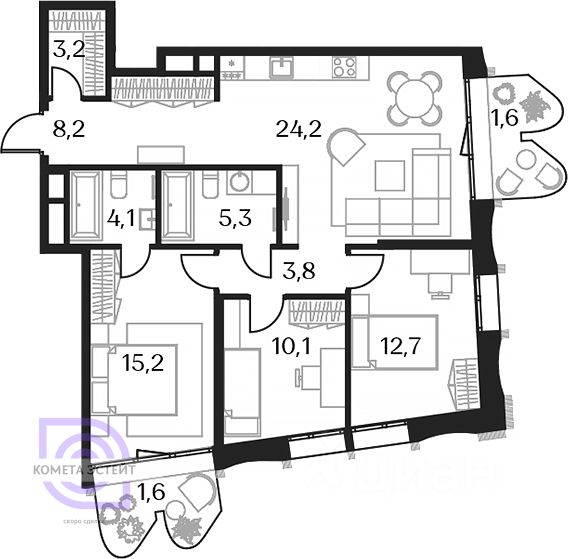 Продается Е-4 к. квартира 90,4 м² в элитном ЖК "Союз"