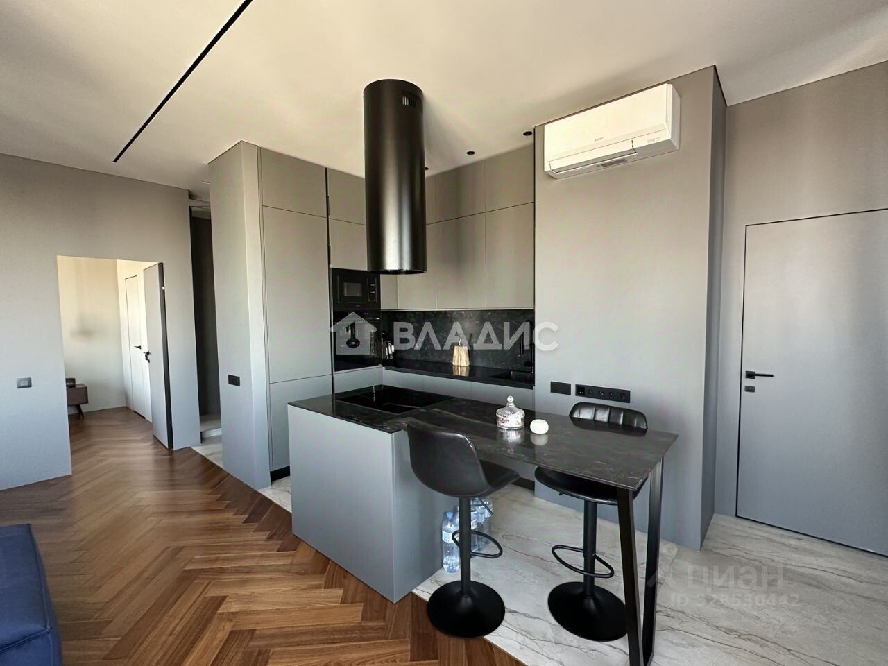 Квартира находится на 11 этаже 20-этажного кирпично-монолитного дома, построенного в 2022 году. Общая площадь — 70 кв. м, жилая — 38 кв. м, площадь кухни — 25 кв. м. Высота потолков — 3 метра, что создаёт ощущение простора и свободы.