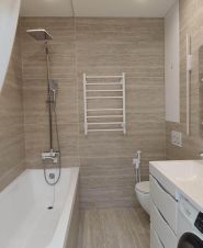 • техникой: встроенные посудомоечная машина, вытяжка, духовой шкаф, индукционная плита, стиральная машина, двухкамерный холодильник с системой No Frost;
