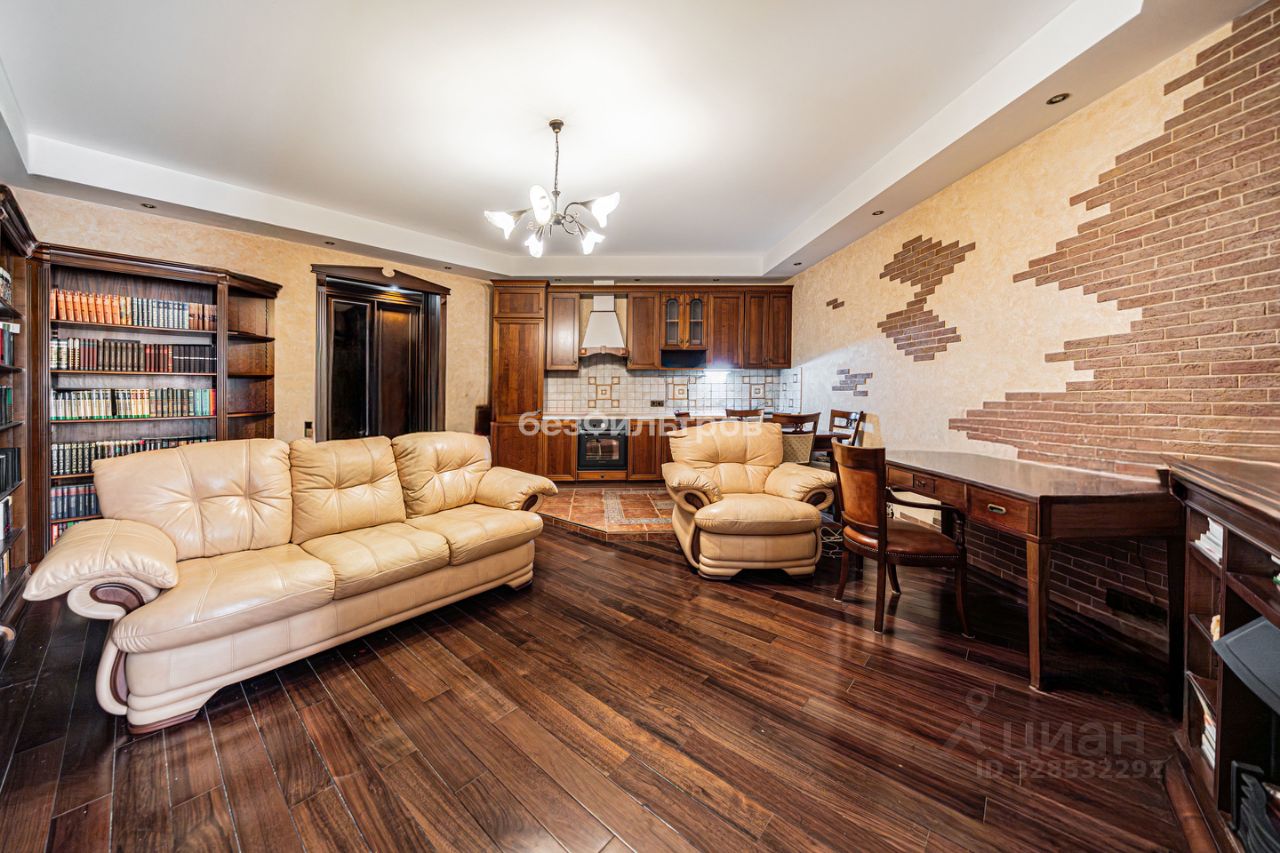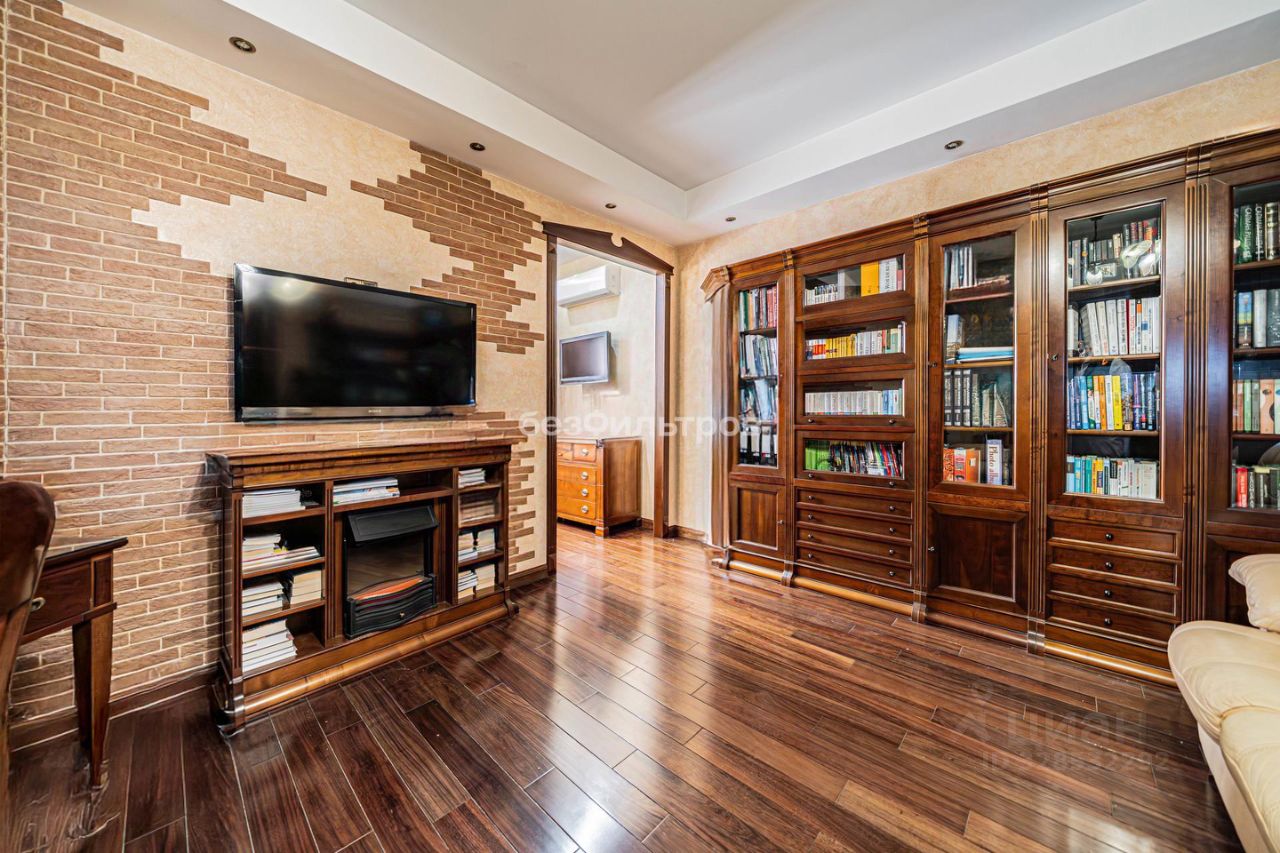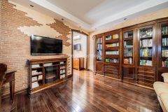 Отделка выполнена в классическом стиле с использованием дорогих материалов: натуральное дерево, керамогранит, декоративная штукатурка. Интерьер в идеальном, ухоженном состоянии — квартира готова к заселению без дополнительных вложений, при желании легко адаптируется под современный декор текстилем и светом.