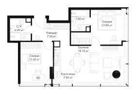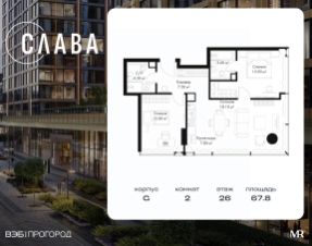 В продаже 2-комнатная квартира площадью 67.80 м² на 26-м этаже корпуса G.