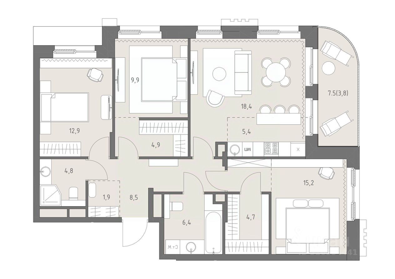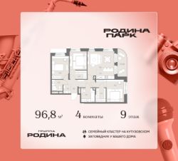 В жилом кластере Родина Парк рядом с природным заказником Долина реки Сетунь продаётся 4-комнатная квартира. Продуманная европланировка, которую легко зонировать под ваши запросы. Потолки от 3,1 м. "Родина Парк" — премиальный семейный кластер с образовательным медиакластером, строящийся на западе Москвы в окружении природного заповедника "Долина реки Сетуни". • Скидки недели на избранный пул лотов • Рассрочка 0% на выгодных условиях до 2 лет • Семейная ипотека, подбор комбо-вариантов ипотечных программ прямо в офисе продаж • Скидки 8% при 100% оплате или ипотеке. ЛОКАЦИЯ: 8 минут пешком до станции БКЛ "Давыдково". 12 минут на автомобиле до Нового Арбата. Удобные выезды на Кутузовский проспект, Аминьевское шоссе. ИНФРАСТРУКТУРА И СЕРВИСЫ ДЛЯ ЖИТЕЛЕЙ - Уникальная экосистема для развития, здоровья и творчества на территории 3,5 Га: - Первый в России образовательный медиакластер (с участием Русской медиагруппы) для творческого развития детей и взрослых с возможностью получить востребованную профессию в сфере шоу-бизнеса. - Инфраструктура и сервисы для семей с детьми на территории жилого кластера (частный детский сад, детские игровые пространства, творческие студии для занятий музыкой и танцами, безопасная и комфортная среда для детей и родителей), событийно-культурная площадка для проведения семейного досуга); - Здоровая среда (биохакинг-центр, фитнес-зал и спортивная инфраструктура во дворе, медитационные пространства, инженерные решения для освещения, свежего воздуха и очистки воды, сервисы красоты и поддержания активного долголетия); - Сервисы заботы (инфраструктура комфорта - подземный паркинг, кладовые, колясочные, консьерж- сервис, умный дом, мобильное приложение, профессиональная управляющая компания, сервисы охраны и обеспечение абсолютной безопасности) - Комьюнити резидентов (социальные пространства для дружеского и делового общения - летний атриум с уличным кинотеатром, зоны отдыха, кафе и рестораны, комьюнити-сервис с культурно- событийной программой в медиакластере); - Модуль благосостояния (комфортные пространства для работы и саморазвития - коворкинги и переговорные). ИНФРАСТРУКТУРА РАЙОНА: Насыщенная образовательная среда: филиалы МГИМО, МГУ, МГТУ, Сколково. Топовые школы: 6 лучших частных школ Москвы и области (Forbes) в 10 минутах езды. Природное окружение для пеших прогулок, спорта и отдыха. "Родина Парк" — это место, где растут и дети, и ваши возможности. Экосистема, где всё подчинено развитию — физически, профессионально, творчески.