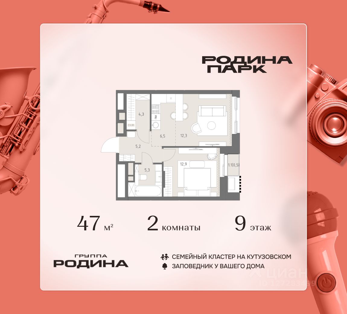 В жилом кластере Родина Парк рядом с природным заказником Долина реки Сетунь продаётся 2-комнатная квартира. Продуманная европланировка, которую легко зонировать под ваши запросы. Потолки от 3,1 м. "Родина Парк" — премиальный семейный кластер с образовательным медиакластером, строящийся на западе Москвы в окружении природного заповедника "Долина реки Сетуни". • Скидки недели на избранный пул лотов • Рассрочка 0% на выгодных условиях до 2 лет • Семейная ипотека, подбор комбо-вариантов ипотечных программ прямо в офисе продаж • Скидки 8% при 100% оплате или ипотеке. ЛОКАЦИЯ: 8 минут пешком до станции БКЛ "Давыдково". 12 минут на автомобиле до Нового Арбата. Удобные выезды на Кутузовский проспект, Аминьевское шоссе. ИНФРАСТРУКТУРА И СЕРВИСЫ ДЛЯ ЖИТЕЛЕЙ - Уникальная экосистема для развития, здоровья и творчества на территории 3,5 Га: - Первый в России образовательный медиакластер (с участием Русской медиагруппы) для творческого развития детей и взрослых с возможностью получить востребованную профессию в сфере шоу-бизнеса. - Инфраструктура и сервисы для семей с детьми на территории жилого кластера (частный детский сад, детские игровые пространства, творческие студии для занятий музыкой и танцами, безопасная и комфортная среда для детей и родителей), событийно-культурная площадка для проведения семейного досуга); - Здоровая среда (биохакинг-центр, фитнес-зал и спортивная инфраструктура во дворе, медитационные пространства, инженерные решения для освещения, свежего воздуха и очистки воды, сервисы красоты и поддержания активного долголетия); - Сервисы заботы (инфраструктура комфорта - подземный паркинг, кладовые, колясочные, консьерж- сервис, умный дом, мобильное приложение, профессиональная управляющая компания, сервисы охраны и обеспечение абсолютной безопасности) - Комьюнити резидентов (социальные пространства для дружеского и делового общения - летний атриум с уличным кинотеатром, зоны отдыха, кафе и рестораны, комьюнити-сервис с культурно- событийной программой в медиакластере); - Модуль благосостояния (комфортные пространства для работы и саморазвития - коворкинги и переговорные). ИНФРАСТРУКТУРА РАЙОНА: Насыщенная образовательная среда: филиалы МГИМО, МГУ, МГТУ, Сколково. Топовые школы: 6 лучших частных школ Москвы и области (Forbes) в 10 минутах езды. Природное окружение для пеших прогулок, спорта и отдыха. "Родина Парк" — это место, где растут и дети, и ваши возможности. Экосистема, где всё подчинено развитию — физически, профессионально, творчески.