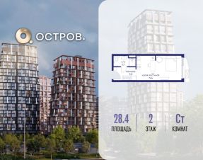 Продаётся квартира от застройщика: общая площадь 28.40 м², жилая 14.40 м², кухня 5.00 м², 2-й этаж, жилой квартал "Остров 14", корпус 1 (секция 1). Срок сдачи: 2 квартал 2029 года.