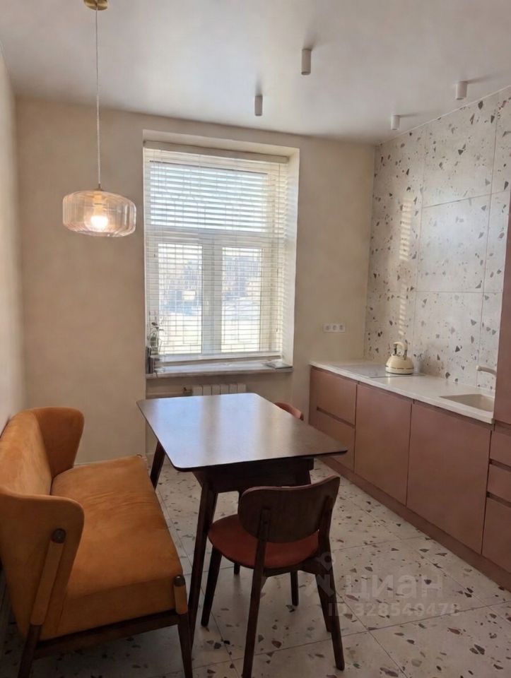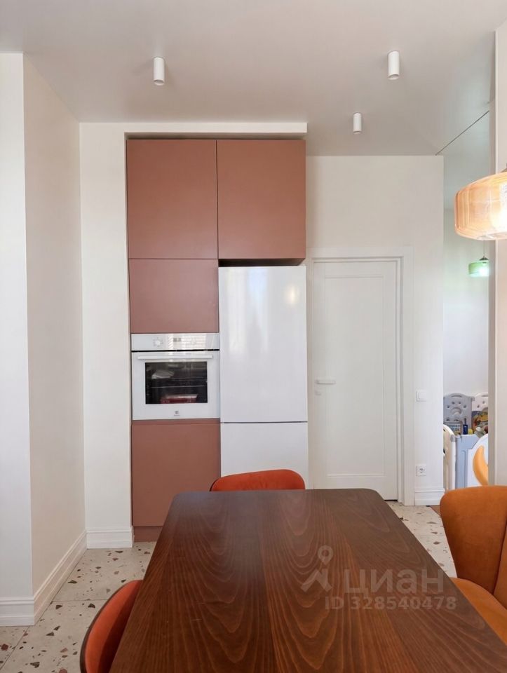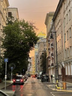 Квартира расположена в кирпичном доме с двумя пассажирскими лифтами, которые обеспечивают подъем до 9-го этажа. Из окон открывается живописная панорама на закатную Москву.