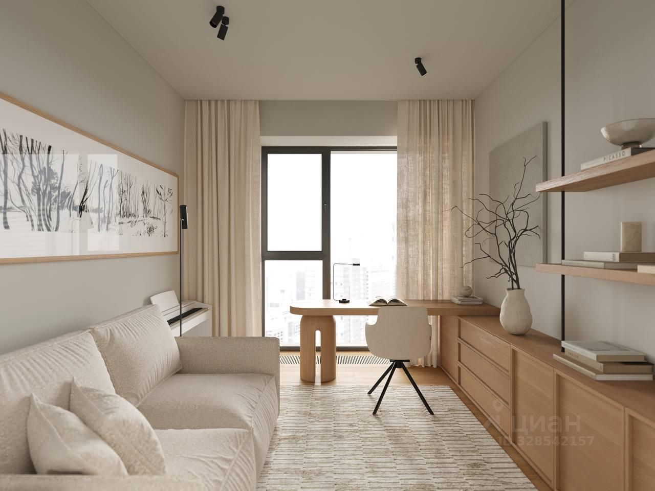 Расположение на 27-ом этаже обеспечивает панорамный вид на МГУ. Премиальные оконные системы Schuco создают в квартире атмосферу абсолютной тишины и комфорта.