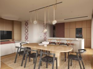 Общая площадь 169 квадратных метров. Высота потолков 3.1 метра, что визуально увеличивает пространство. Панорамные окна Schuco высотой 2,7 метра оснащены функцией проветривания, наполняя помещение естественным светом и свежим воздухом. Функциональная планировка идеально подходит для комфортного проживания большой семьи. На этаже предусмотрены кладовые помещения для хранения личных вещей.