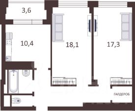 Общая площадь 66,8 кв.м. (включая лоджию): в том числе две комнаты 18,1кв.м. и 17,3кв.м., кухня 10,4 кв.м., застекленная лоджия 3,6 кв.м.