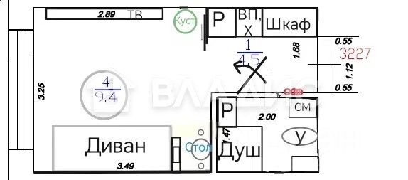 Площадь и планировка: несмотря на компактные размеры (общая площадь — 17,4 кв. м, жилая — 9,4 кв. м), студия обладает продуманной планировкой. Здесь вы найдёте всё необходимое для комфортного проживания.