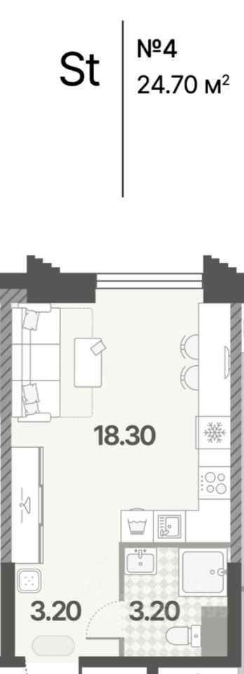 Функциональный формат студии идеально подойдет для одного человека, пары или в качестве инвестиции под аренду. Проект отличается высоким спросом благодаря удачной локации и премиальной инфраструктуре комплекса.