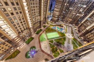 Огороженная территория, на которой располагаются: площадки для детей: дошкольного, школьного возрастов, есть частный детский сад, спортивная (крытое поле для футбола и баскетбола), скейтпарк, зона для воркаута, фонтан, сухой фонтан, сквер, аллея, велосипедная дорожка, мини-гольф, гномон!