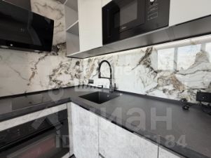 установлен современный кухонный гарнитур со встроенной техникой: индукционная плита, вытяжка, холодильник, микроволновая печь, духовой шкаф, посудомоечная машина;