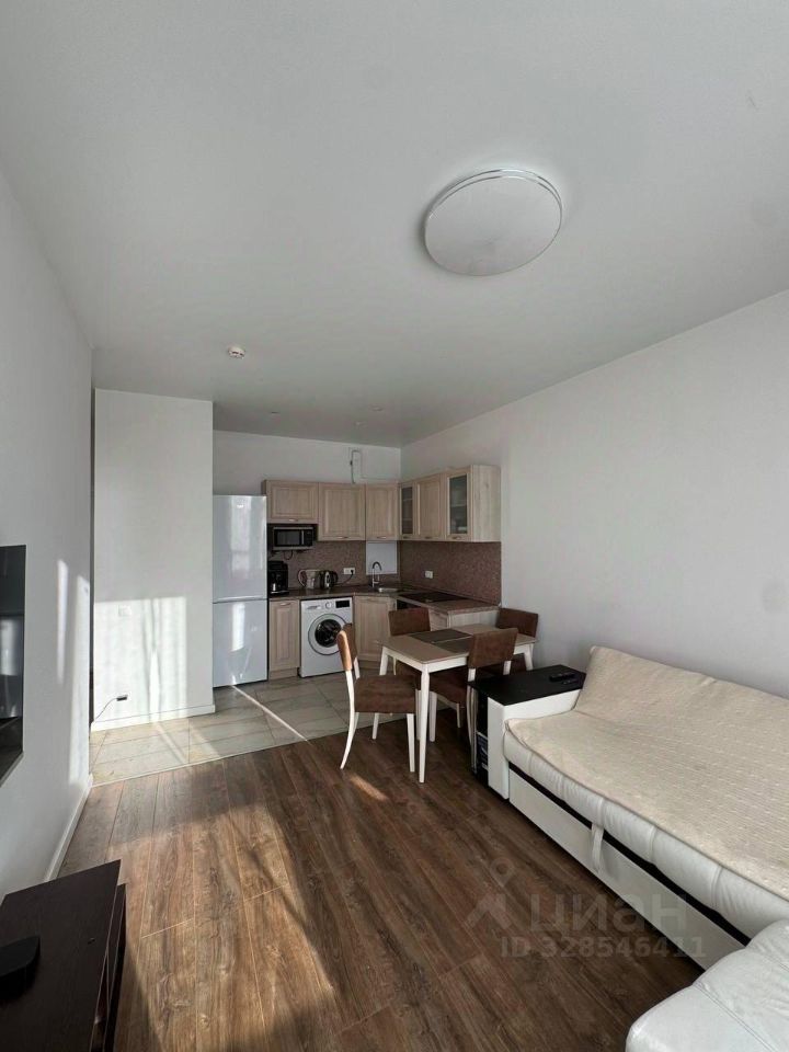Функциональная планировка: просторная кухня-гостиная площадью 16 м² и изолированная спальня. Квартира полностью готова к проживанию — кухня оборудована всей необходимой техникой, включая холодильник и стиральную машину.