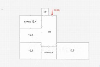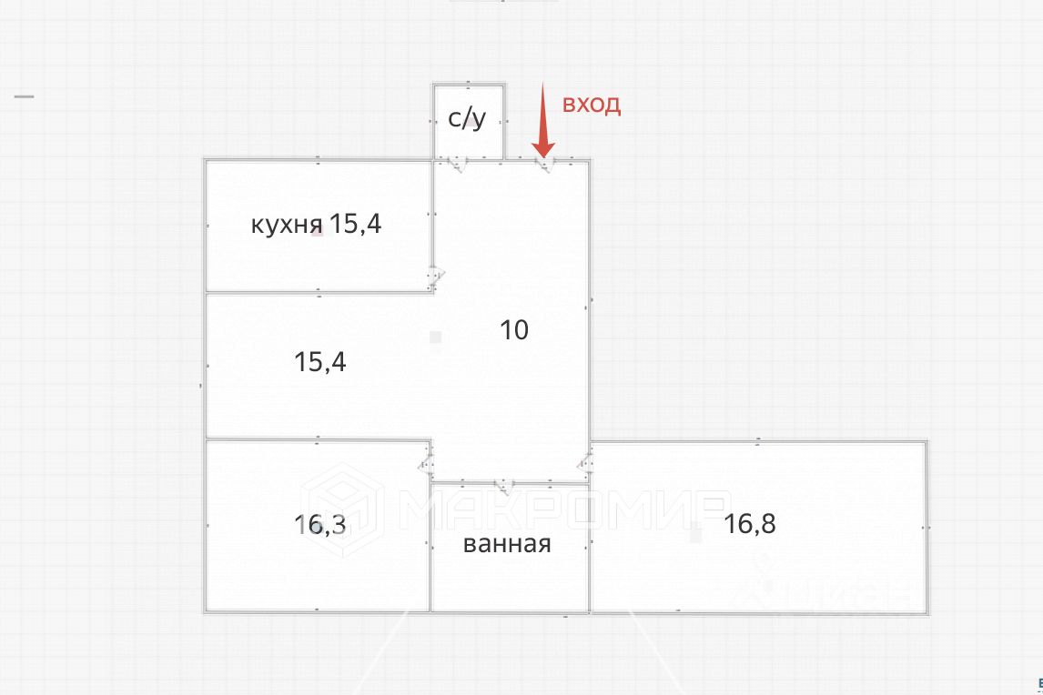 • Кухня 15,4 кв.м. Комнаты: 15,4 кв.м., 16,3 кв.м., 16,8 кв.м. Два сан.узла. Большая прихожая.