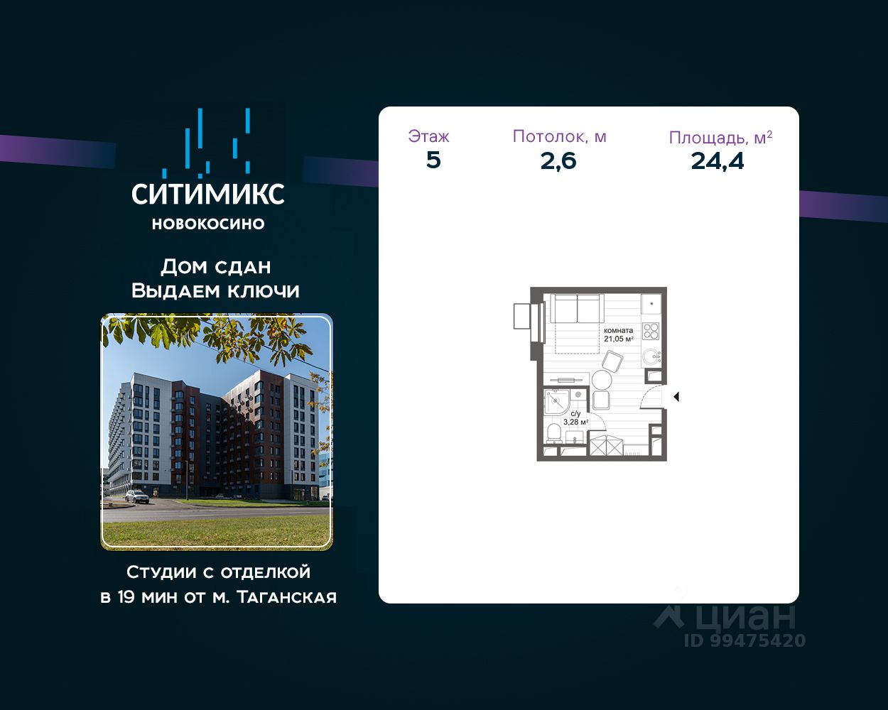 МФК "СИТИМИКС Новокосино" находится в 15 минутах пешком от м. Новокосино, время поездки до центра Москвы займёт всего 30 минут.