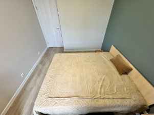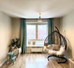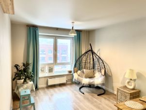 Выполнен качественный ремонт для себя: продуманная планировка, спокойные материалы, комфортные решения. Встроенная кухня с техникой Korting (производство Германия). В спальне 1 создан подиум под матрас со встроенными шкафами для хранения, а также удобная гардеробная. Спальня 2- универсальная : может использоваться как детская, кабинет или гостевая.