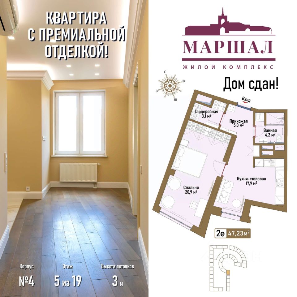 В нескольких мин. езды - Ленинградский пр-т, по которому можно быстро доехать до ТТК или центра Москвы, и Ленинградское ш., ведущее к аэропорту Шереметьево. Богатая собственная инфраструктура МФК "Маршал": детсады (в т. ч. английский), творческие и спортивные студии, студия раннего плавания, здание фитнес-центра с бассейном, минимаркет AB Daily, подземный паркинг на 1200 м/м, химчистка, салоны красоты, кафе, рестораны, медцентр, БЦ класса B+, где можно арендовать/купить офис и работать рядом с домом, и т.д. Комплекс получил награду TREFI Лучший проект бизнес-класса в Москве.