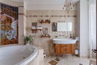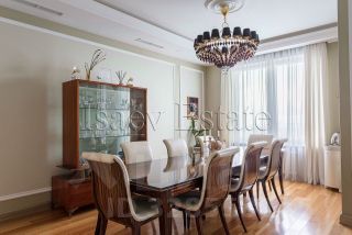 В деталях интерьера выполнена отделка из оникса, натурального дерева, подоконники из камня. Квартира укомплектована дорогой качественной мебелью и техникой - Kuppersbusch, Asko, Liebherr.