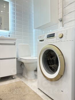 Санузел: Совмещённый, но функциональный: стиральная машина + система хранения.