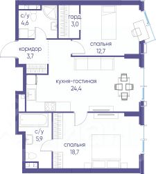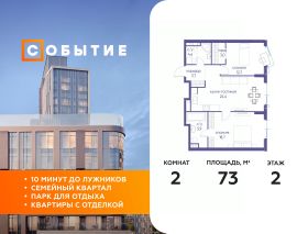 В продаже 2-к квартира от застройщика. Общая площадь 73.00, жилая 34.40, кухня 24. Квартира расположена на 2 этаже жилого квартала "Событие-6", корпус 2, Секция 1. Квартира без отделки. Срок сдачи: 4 кв. 2029 года.