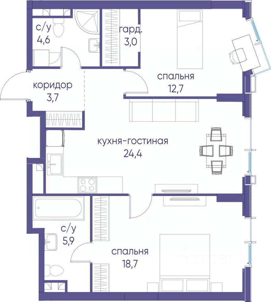• Закрытые общественные пространства: детская комната, спортивный зал, коворкинг, лаунж-зоны.