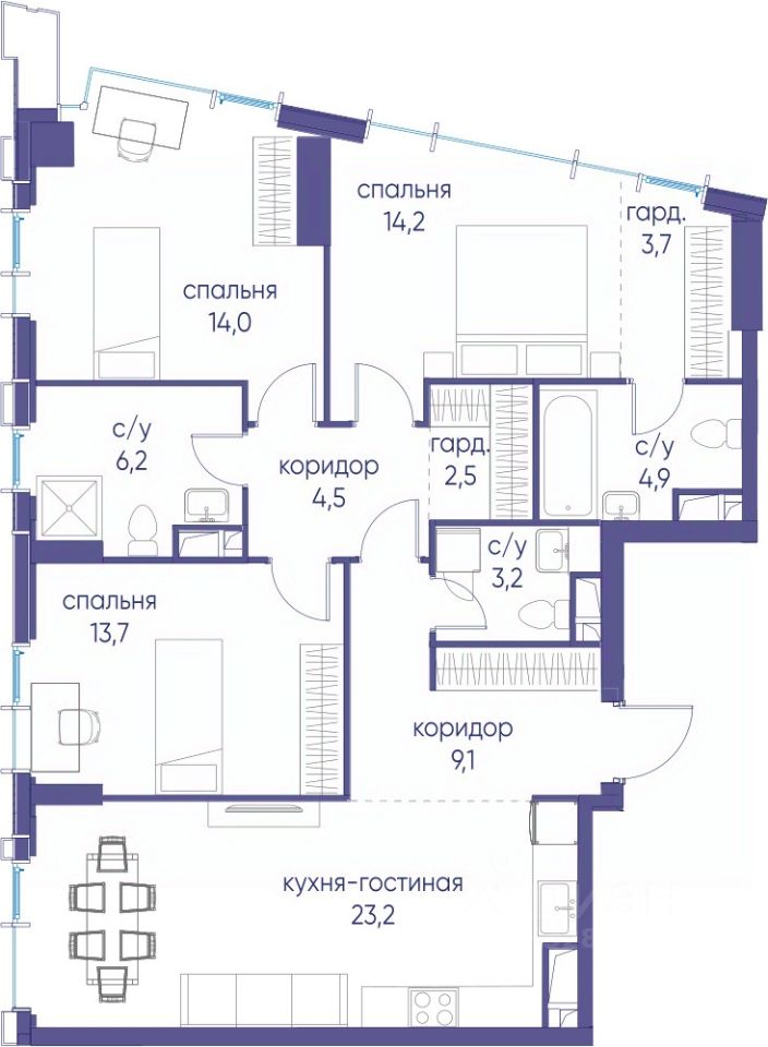 В продаже 2-к квартира от застройщика. Общая площадь 99.20, жилая 45.60, кухня 23. Квартира расположена на 13 этаже жилого квартала "Событие-6", корпус 2, Секция 1. Квартира без отделки. Срок сдачи: 4 кв. 2029 года.