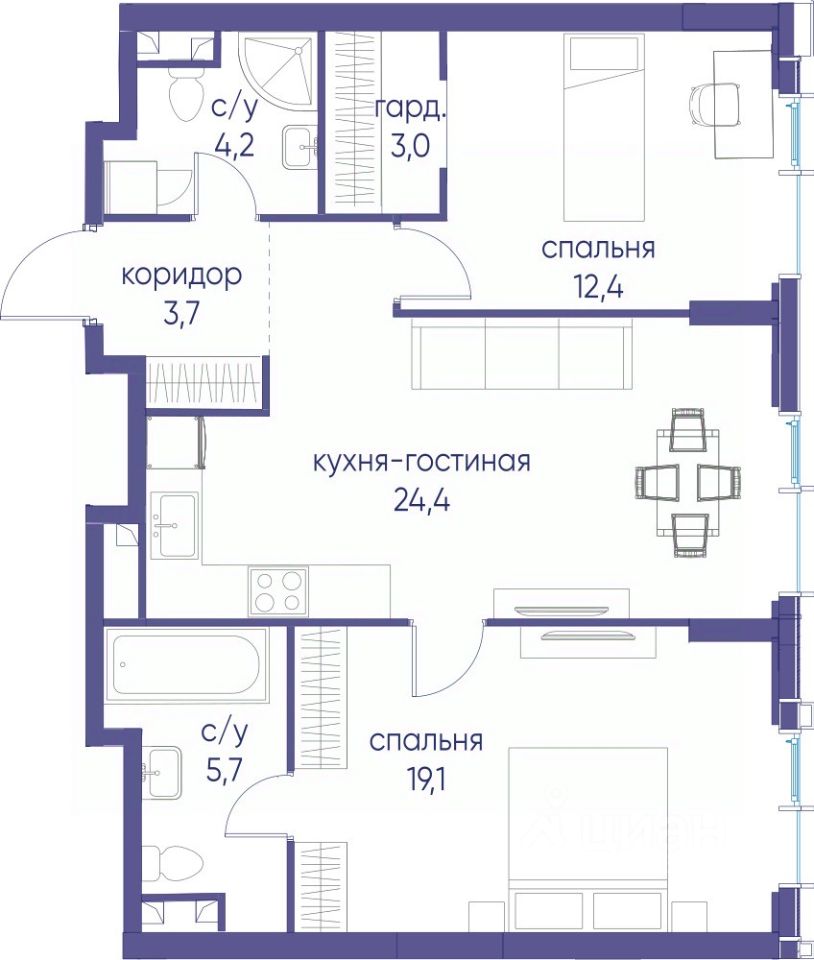 • Закрытые общественные пространства: детская комната, спортивный зал, коворкинг, лаунж-зоны.
