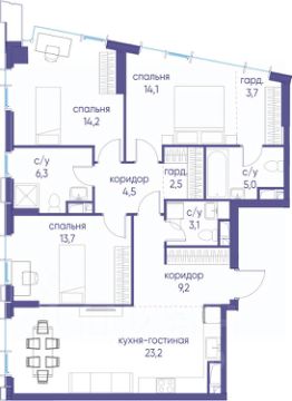 • Закрытые общественные пространства: детская комната, спортивный зал, коворкинг, лаунж-зоны.