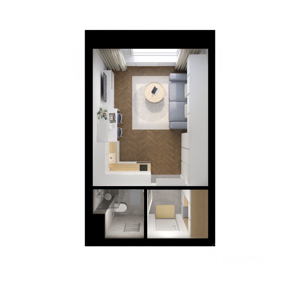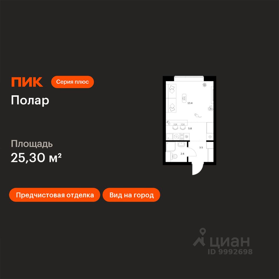 Продаётся квартира-студия площадью 25,3 кв.м на 29 этаже 50 этажного дома (Корпус 1.5, Секция 2) проекта ПИК Полар. Светлый просторный подъезд на уровне земли, функциональная планировка, большие окна, предчистовая отделка.
