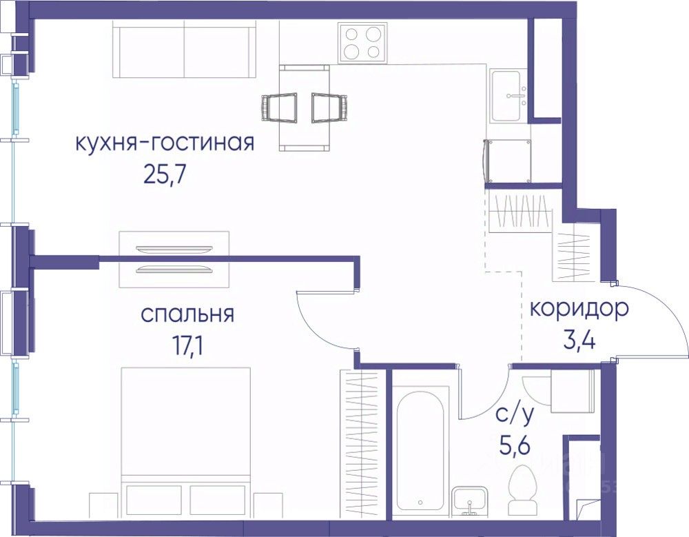В продаже 1-к квартира от застройщика. Общая площадь 51.80, жилая 17.10, кухня 25.7. Квартира расположена на 25 этаже жилого квартала "Событие-6", корпус 2, Секция 1. Квартира без отделки. Срок сдачи: 4 кв. 2029 года.