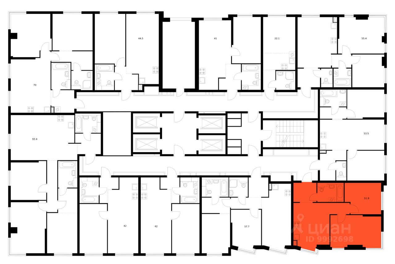Продаётся 2-комн. квартира площадью 51,9 кв.м на 27 этаже 32 этажного дома (Корпус 1.1.3, Секция 3) проекта ПИК Кронштадтский 9. Светлый просторный подъезд на уровне земли, функциональная планировка, большие окна, предчистовая отделка.