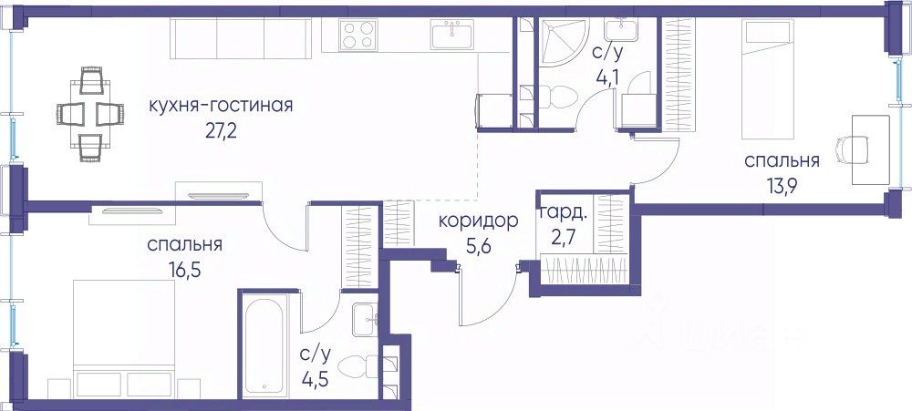 • Закрытые общественные пространства: детская комната, спортивный зал, коворкинг, лаунж-зоны.