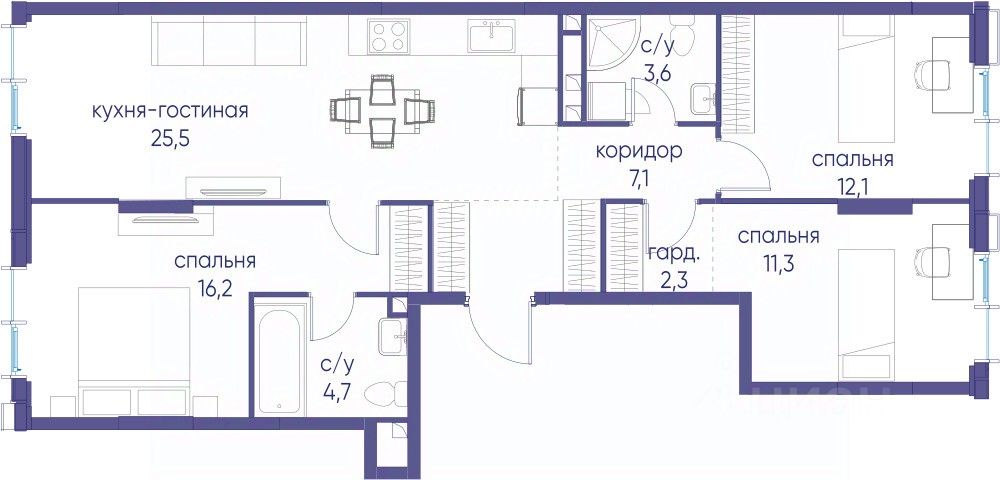 • Закрытые общественные пространства: детская комната, спортивный зал, коворкинг, лаунж-зоны.