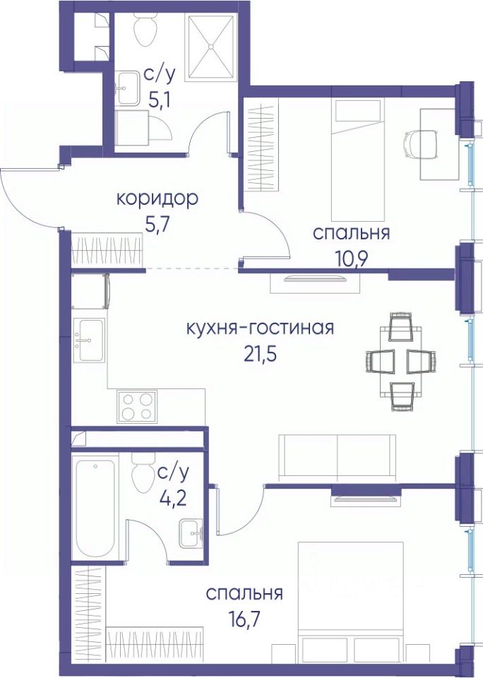 • Закрытые общественные пространства: детская комната, спортивный зал, коворкинг, лаунж-зоны.