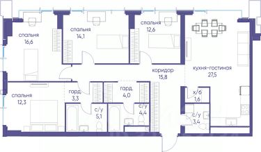 • Закрытые общественные пространства: детская комната, спортивный зал, коворкинг, лаунж-зоны.