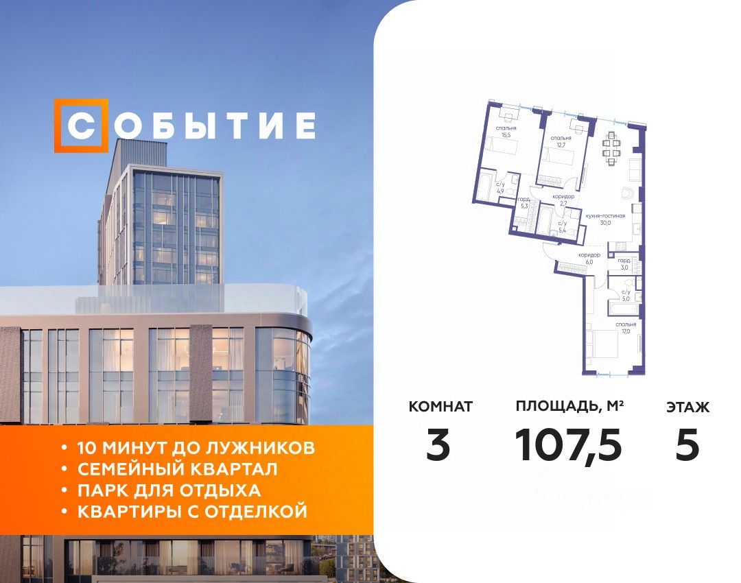 СОБЫТИЕ.6 — финальный дом парк-квартала СОБЫТИЕ на Мосфильмовской. Переезжайте в уже сформированный квартал с готовой инфраструктурой и парком! Премиальный жилой комплекс в престижном районе Москвы предлагает стильную архитектуру, продуманное благоустройство и великолепно разнообразие общественных пространств. Свой парк прямо возле дома!