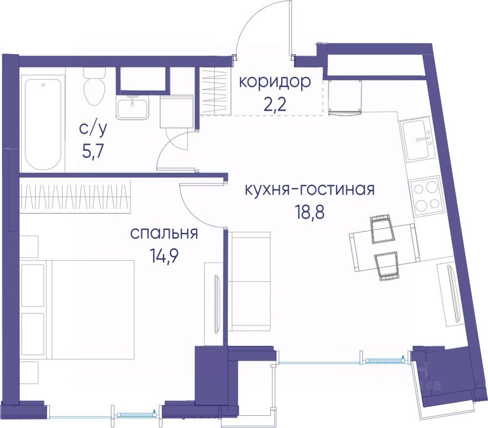 В продаже 1-к квартира от застройщика. Общая площадь 41.60, жилая 14.90, кухня 18.5. Квартира расположена на 10 этаже жилого квартала "Событие-6", корпус 2, Секция 5. Квартира без отделки. Срок сдачи: 4 кв. 2029 года.