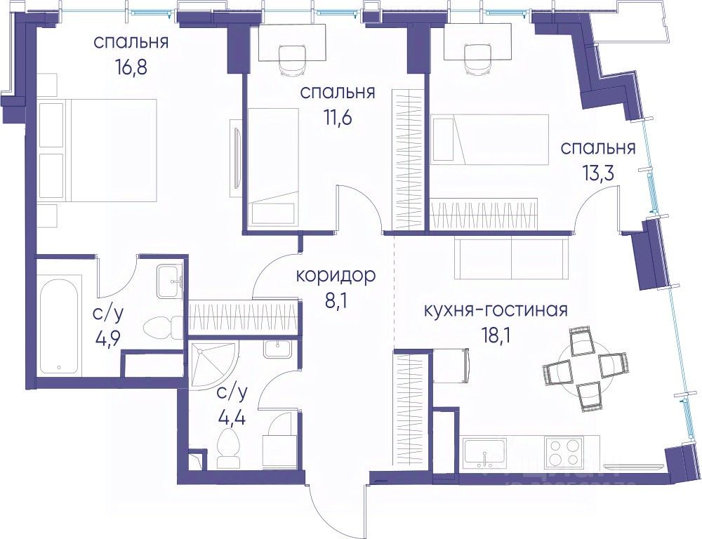 • Закрытые общественные пространства: детская комната, спортивный зал, коворкинг, лаунж-зоны.