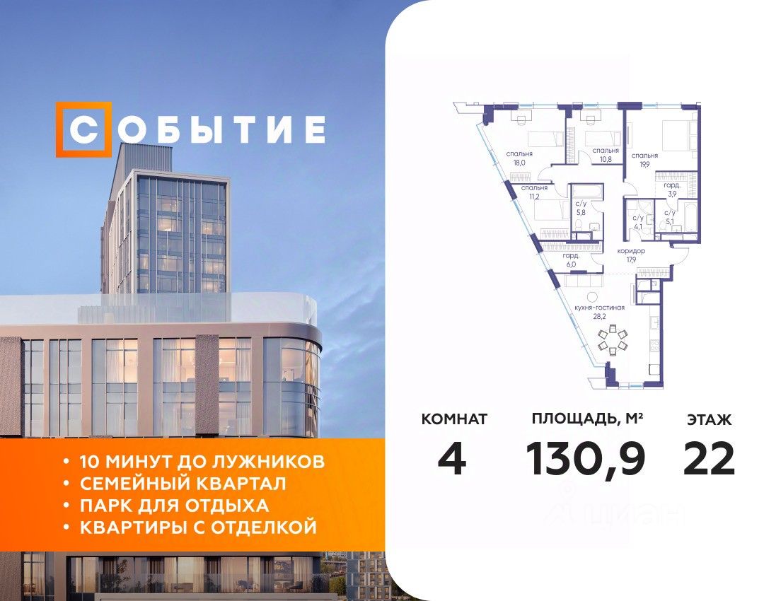 СОБЫТИЕ.6 — финальный дом парк-квартала СОБЫТИЕ на Мосфильмовской. Переезжайте в уже сформированный квартал с готовой инфраструктурой и парком! Премиальный жилой комплекс в престижном районе Москвы предлагает стильную архитектуру, продуманное благоустройство и великолепно разнообразие общественных пространств. Свой парк прямо возле дома!
