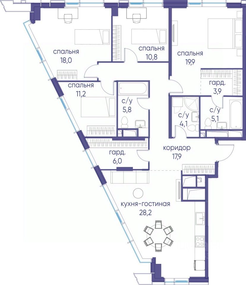 • Закрытые общественные пространства: детская комната, спортивный зал, коворкинг, лаунж-зоны.