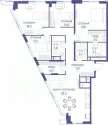 В продаже 2-к квартира от застройщика. Общая площадь 130.90, жилая 63.80, кухня 26.7. Квартира расположена на 22 этаже жилого квартала "Событие-6", корпус 2, Секция 5. Квартира без отделки. Срок сдачи: 4 кв. 2029 года.