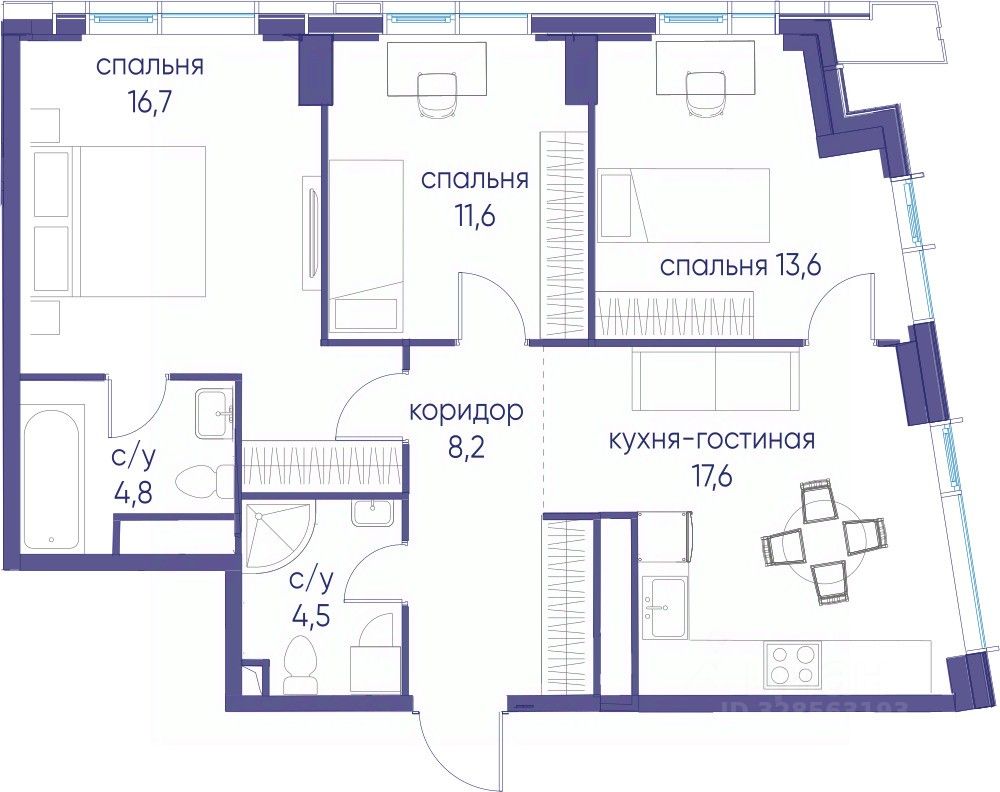В продаже 1-к квартира от застройщика. Общая площадь 77.00, жилая 41.90, кухня 17.4. Квартира расположена на 24 этаже жилого квартала "Событие-6", корпус 2, Секция 5. Квартира без отделки. Срок сдачи: 4 кв. 2029 года.