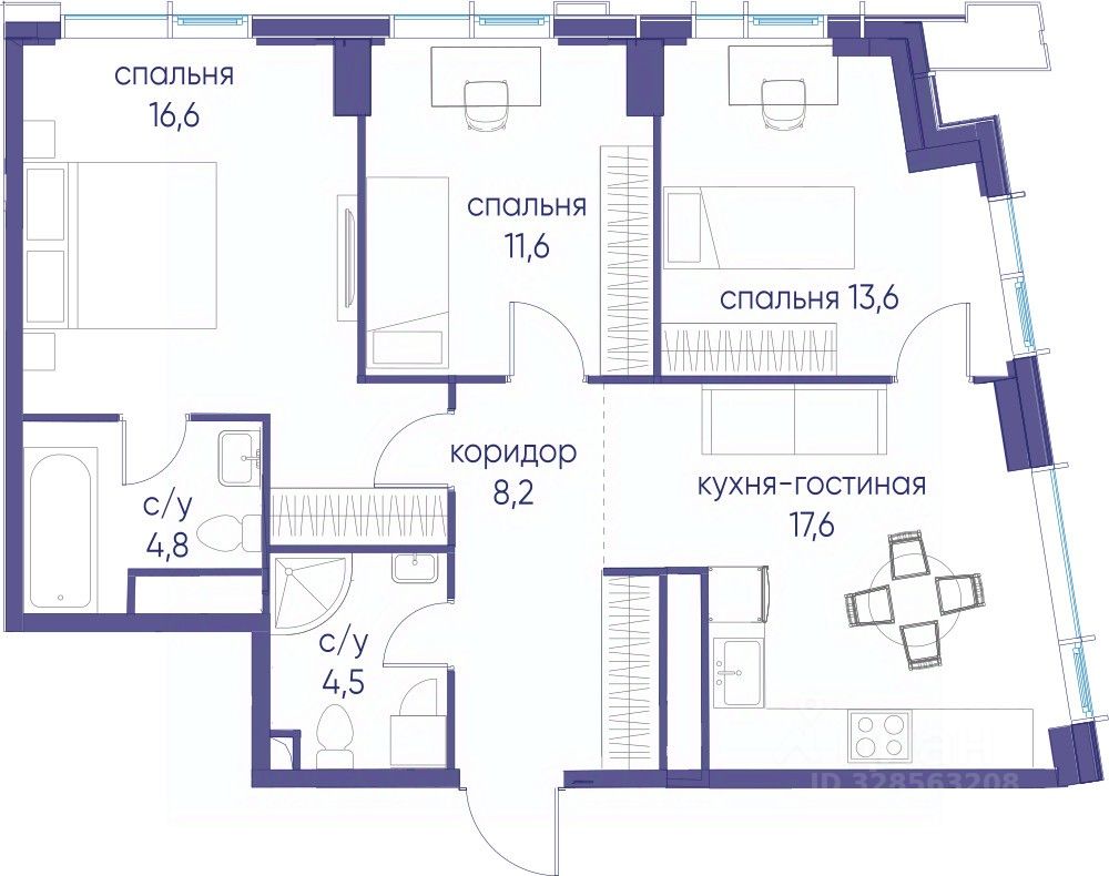 • Закрытые общественные пространства: детская комната, спортивный зал, коворкинг, лаунж-зоны.