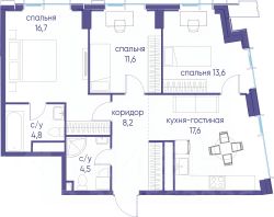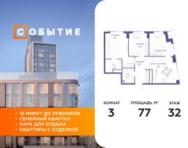 В продаже 1-к квартира от застройщика. Общая площадь 77.00, жилая 41.90, кухня 17.4. Квартира расположена на 32 этаже жилого квартала "Событие-6", корпус 2, Секция 5. Квартира без отделки. Срок сдачи: 4 кв. 2029 года.
