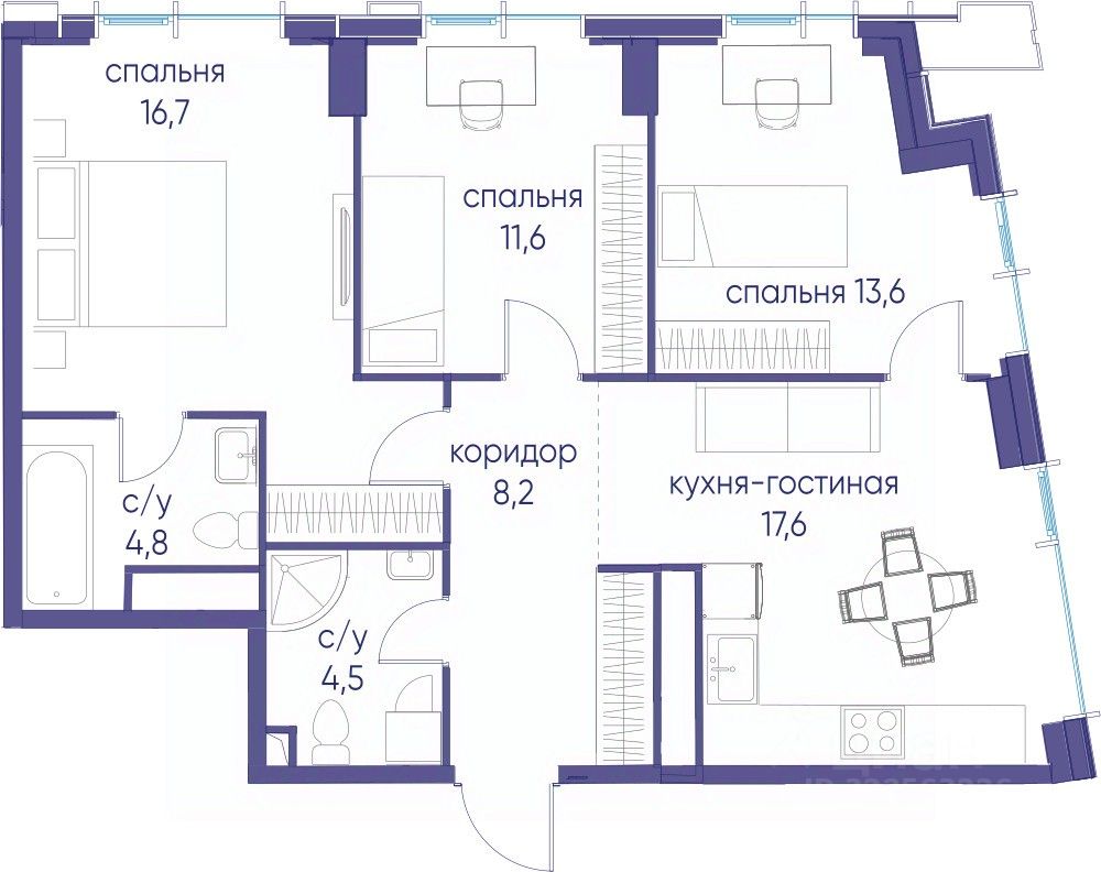 • Закрытые общественные пространства: детская комната, спортивный зал, коворкинг, лаунж-зоны.