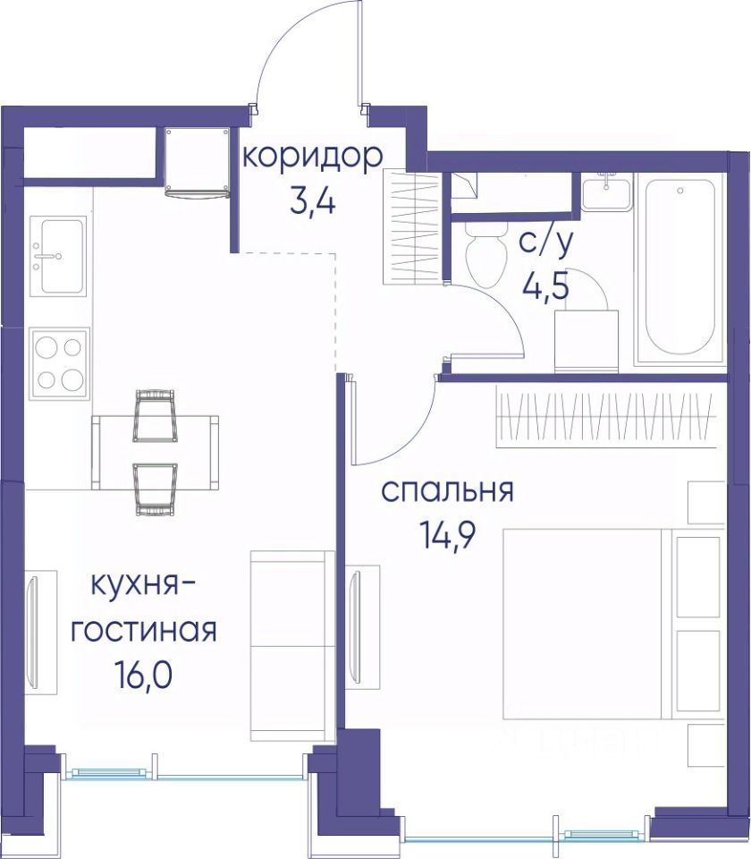 В продаже 1-к квартира от застройщика. Общая площадь 38.80, жилая 14.90, кухня 16. Квартира расположена на 32 этаже жилого квартала "Событие-6", корпус 2, Секция 5. Квартира без отделки. Срок сдачи: 4 кв. 2029 года.