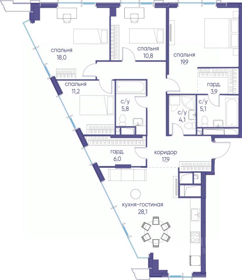 • Закрытые общественные пространства: детская комната, спортивный зал, коворкинг, лаунж-зоны.